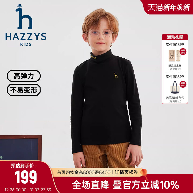 hazzys哈吉斯童装男女童打底衫2025秋新中大童莱卡高弹内搭针织衫