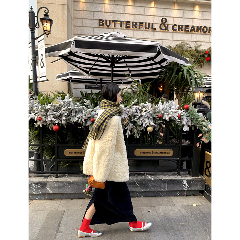 今屿花花 冬季半身裙女2025年新款藏青色灯芯绒长款半裙开衩裙子
