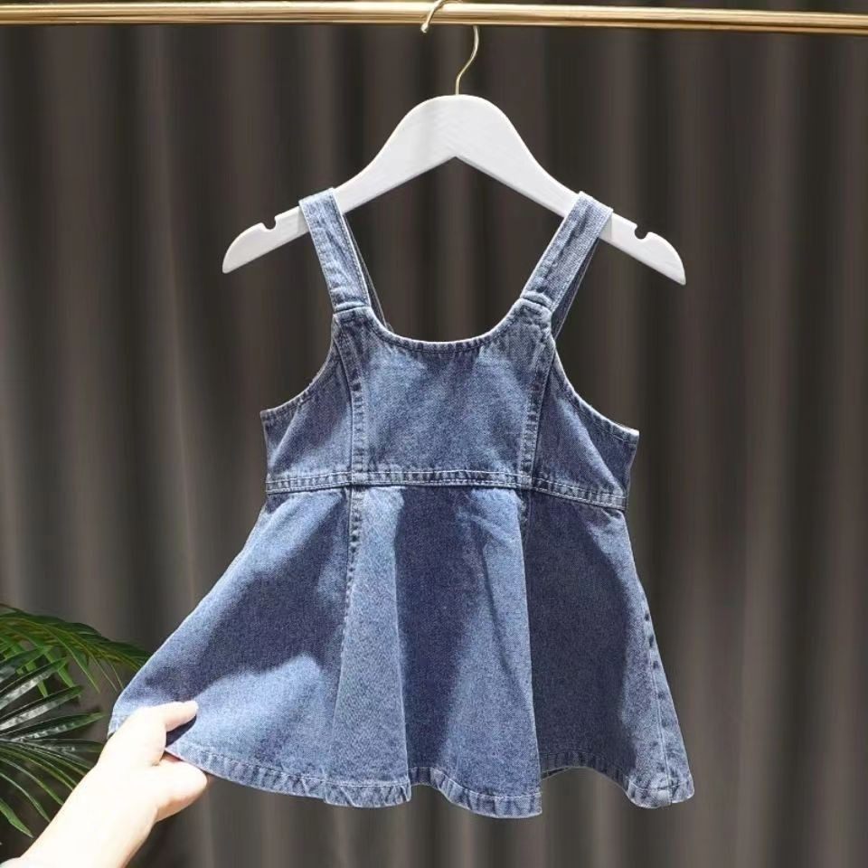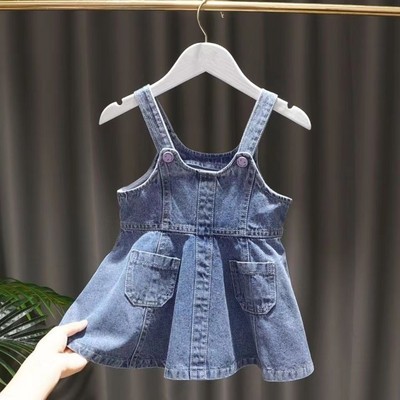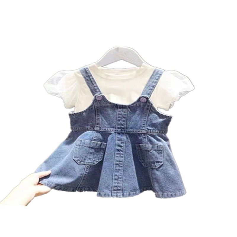 女宝宝夏连衣裙儿童牛仔背带裙泡泡袖套装韩版洋气裙子T恤两件套