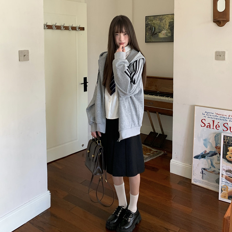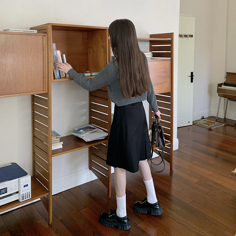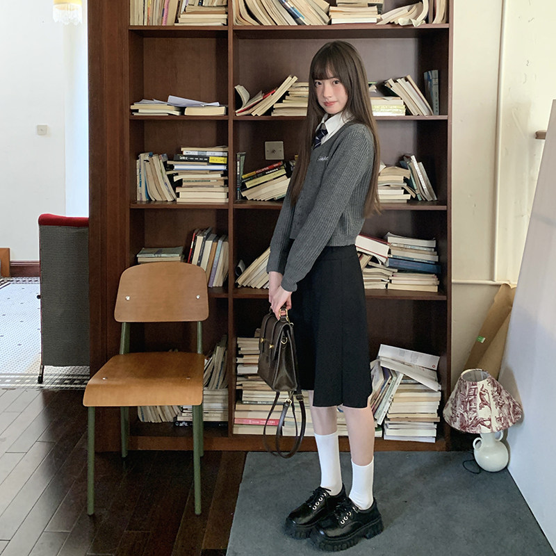 JK制服学院风黑色中长款半身裙