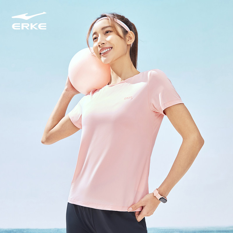 鸿星尔克短袖t恤女2025夏季新款女士羽毛球瑜伽运动防晒冰丝上衣
