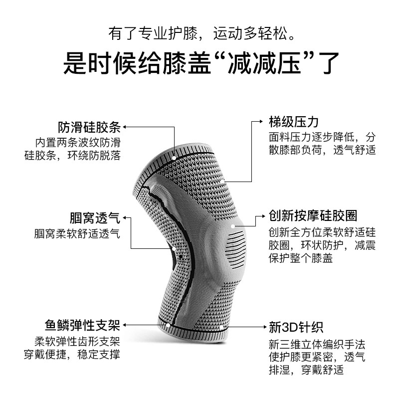 外贸订单运动护膝足球篮球男专业半月板保护膝伤跑步健身薄款防滑