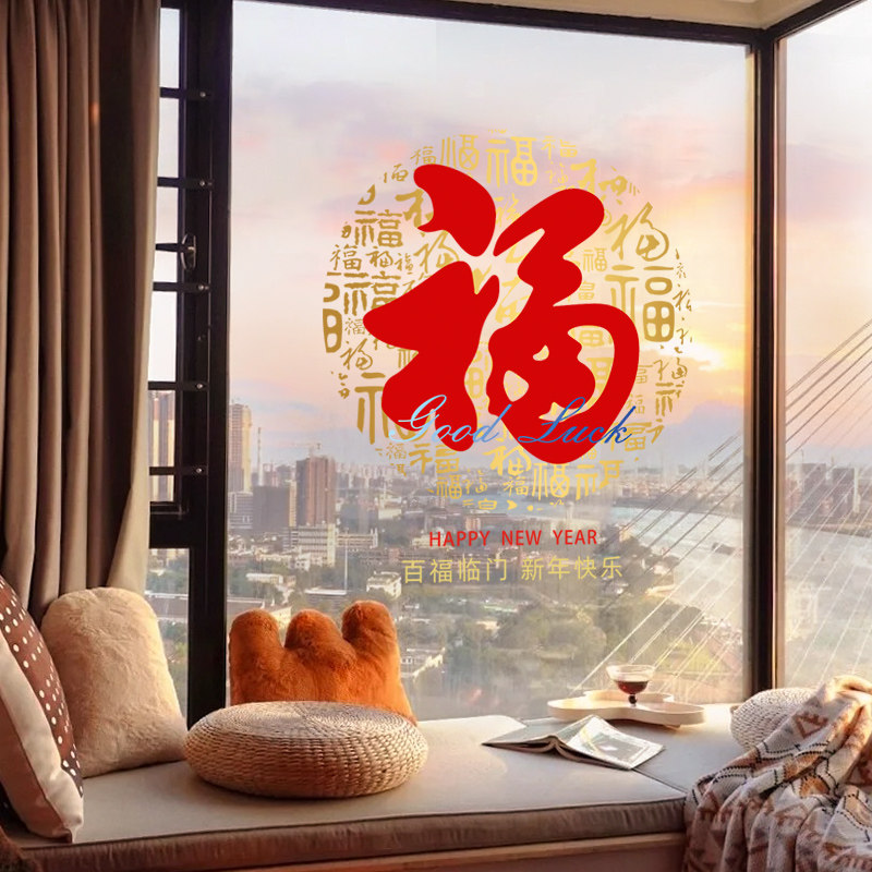新年装饰窗花橱窗静电玻璃贴纸