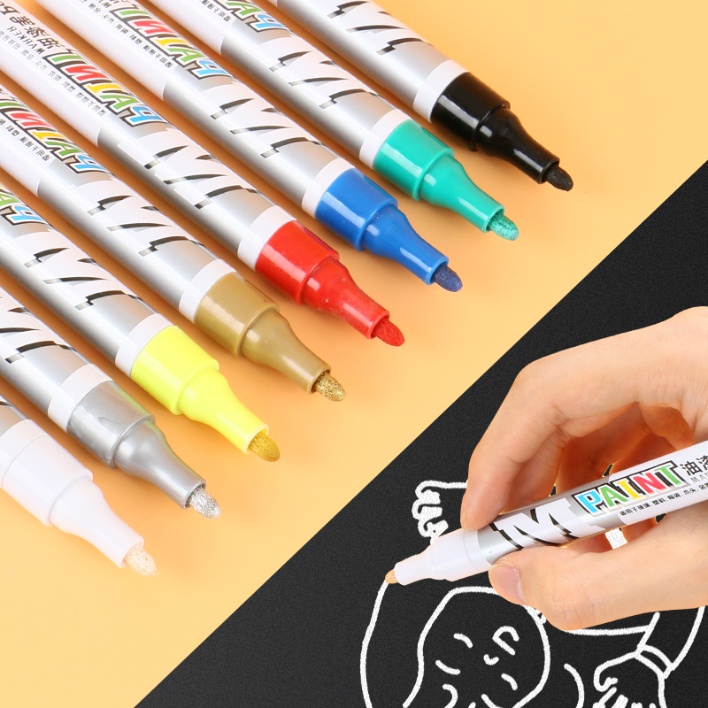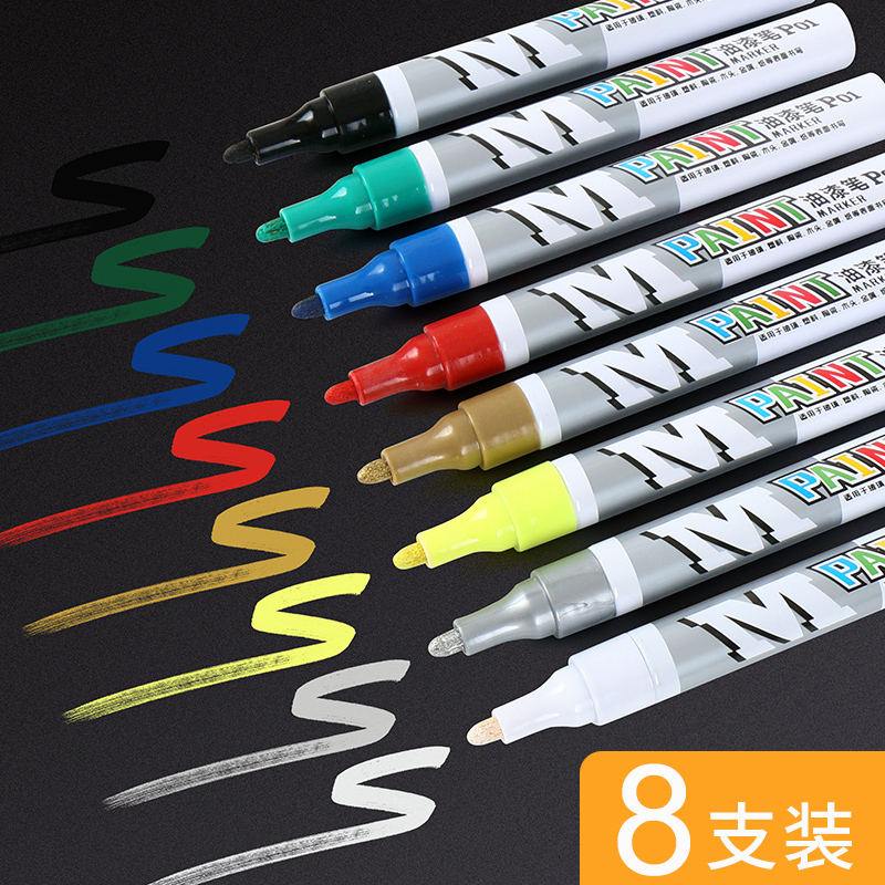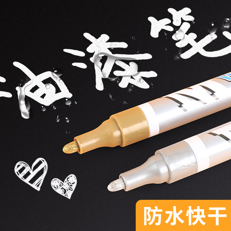 晨光油漆笔支美术勾线金色儿童防水diy轮胎黑色记号笔马克笔大头学生专用快递的红色明星不掉色电镀银色绘画