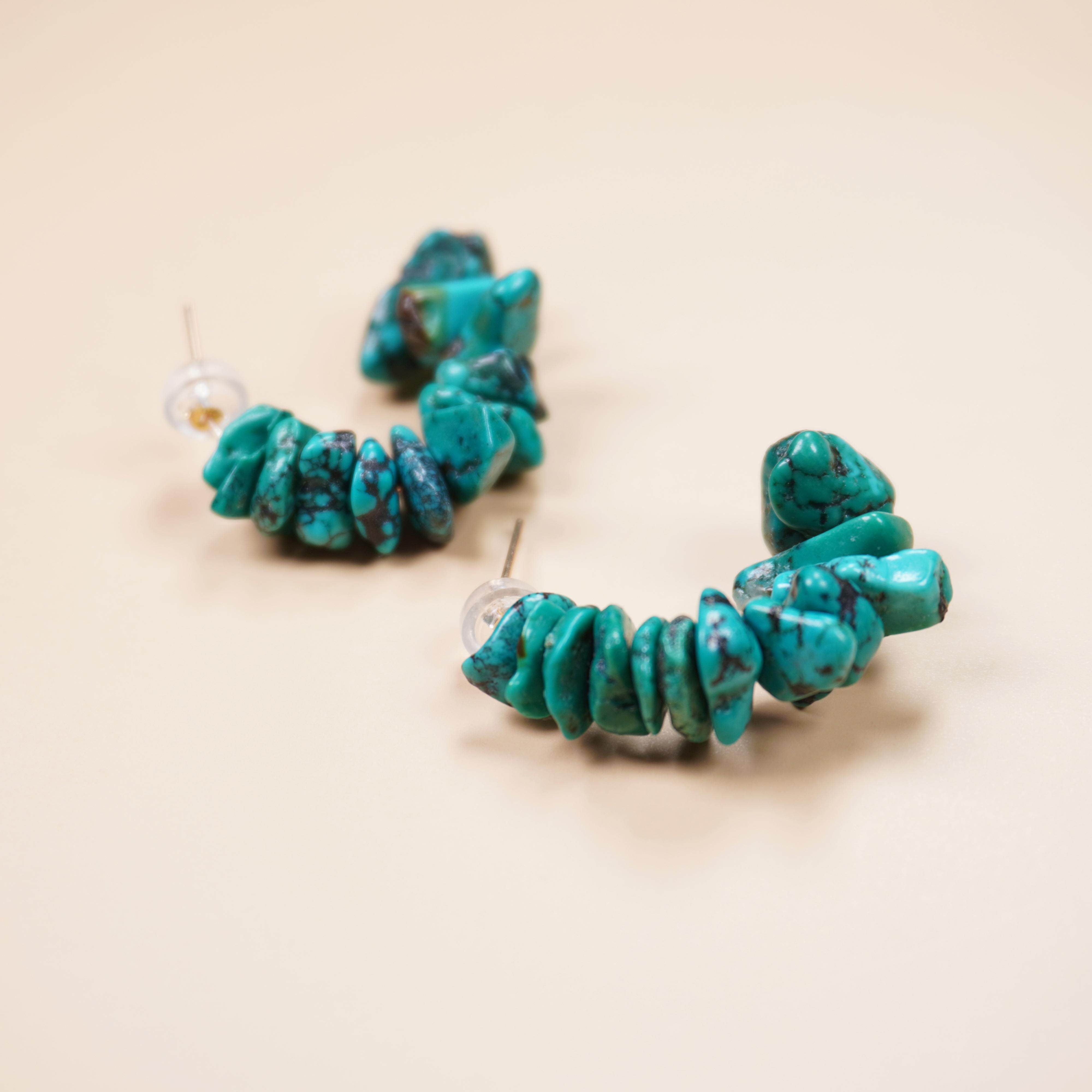 绿松石耳环女旅行度假蓝色天然石耳饰波西米亚风小碎石大耳圈耳坠