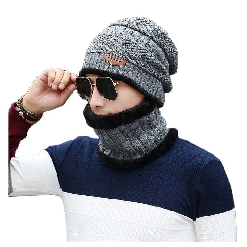 2025冬季新款帽子男士针织毛线帽休闲保暖围脖套帽 厂家