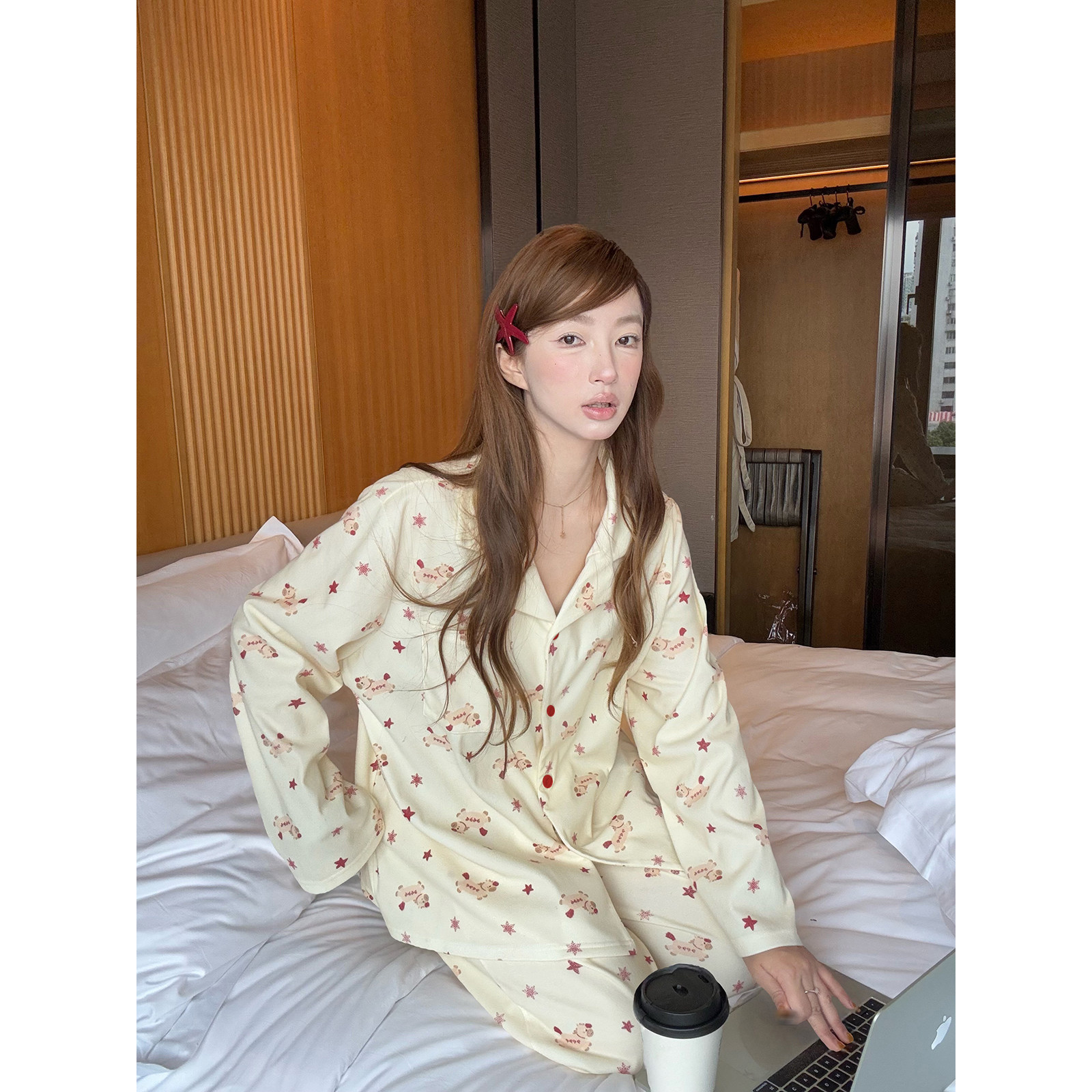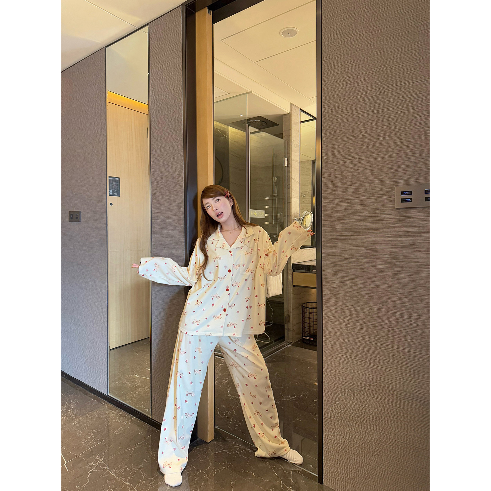 JoyceBra 马年限定可爱卡通星星德绒睡衣女宽松本命年家居服套装