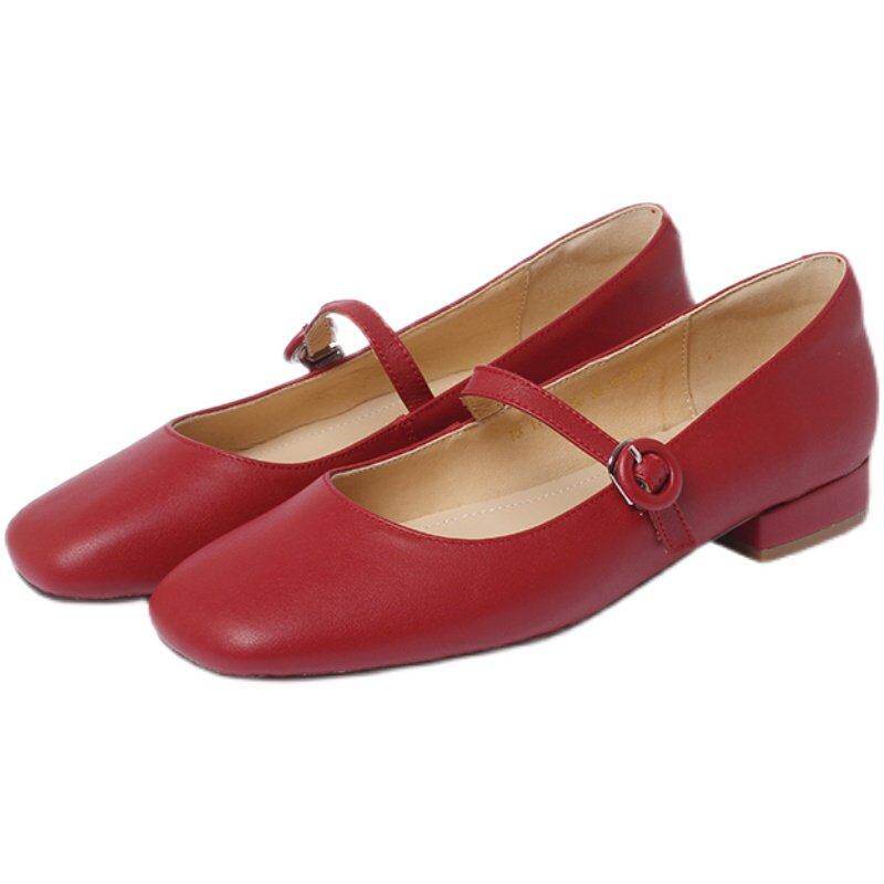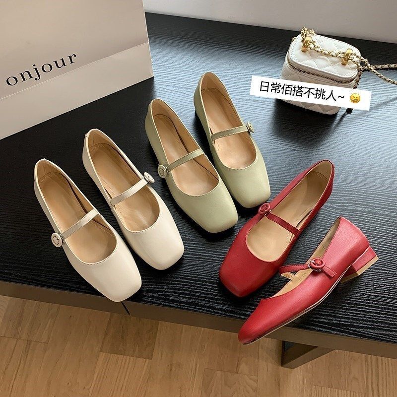鞋子女2026年新款平底单鞋潮小众浅口春季方头小皮鞋真皮玛丽珍鞋