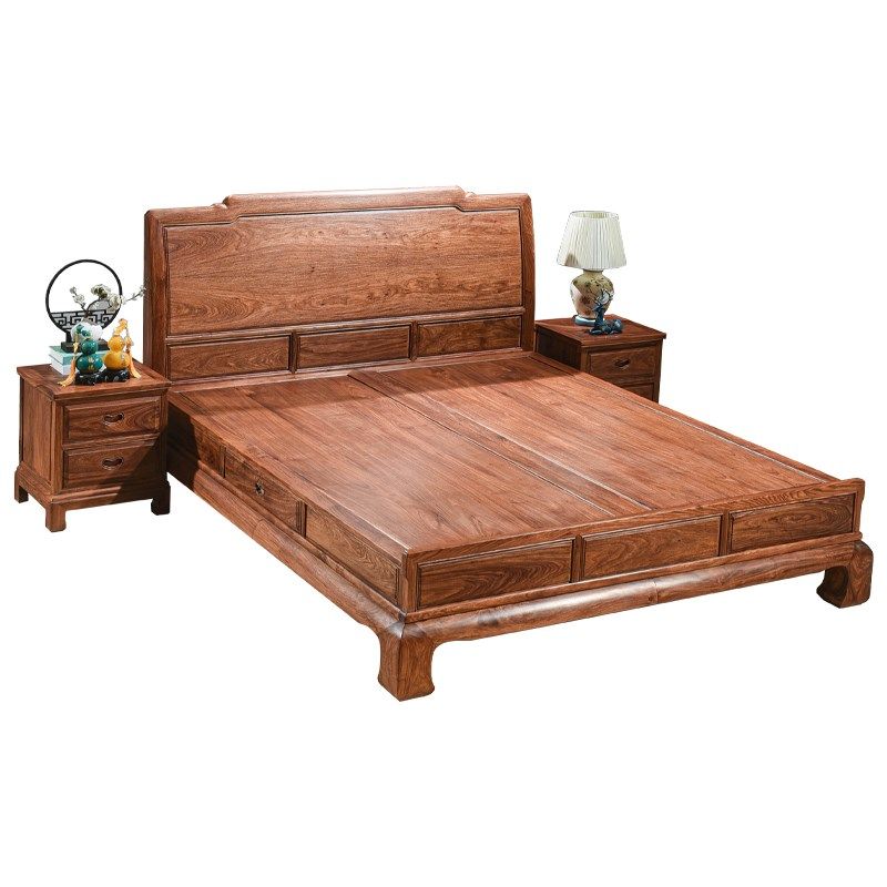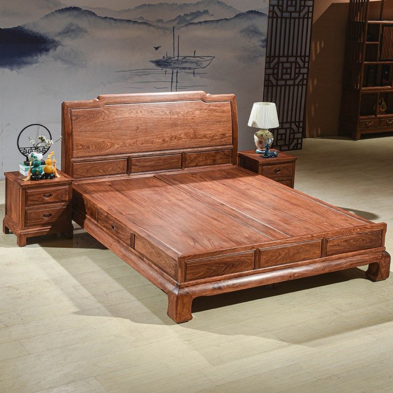 刺猬紫檀大床红木床双人床1.8大脚床中式现代卧室晖腾明清家具
