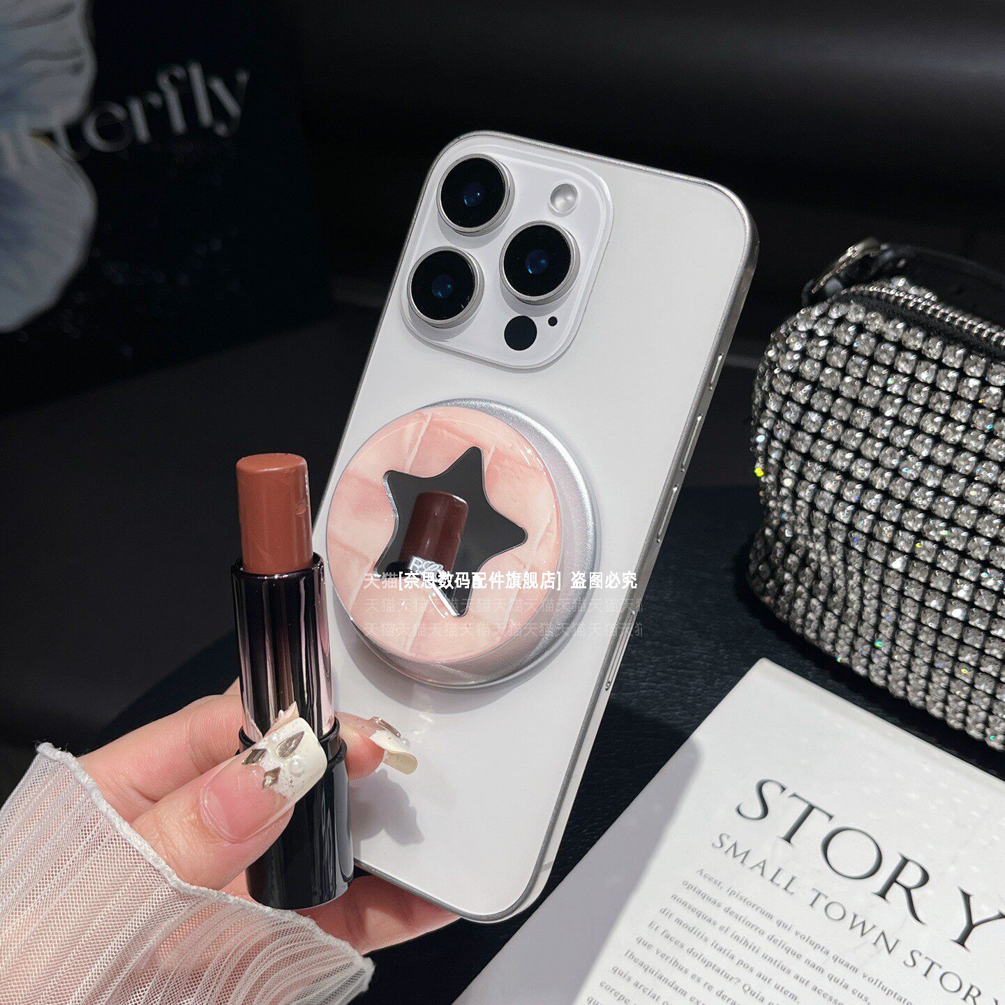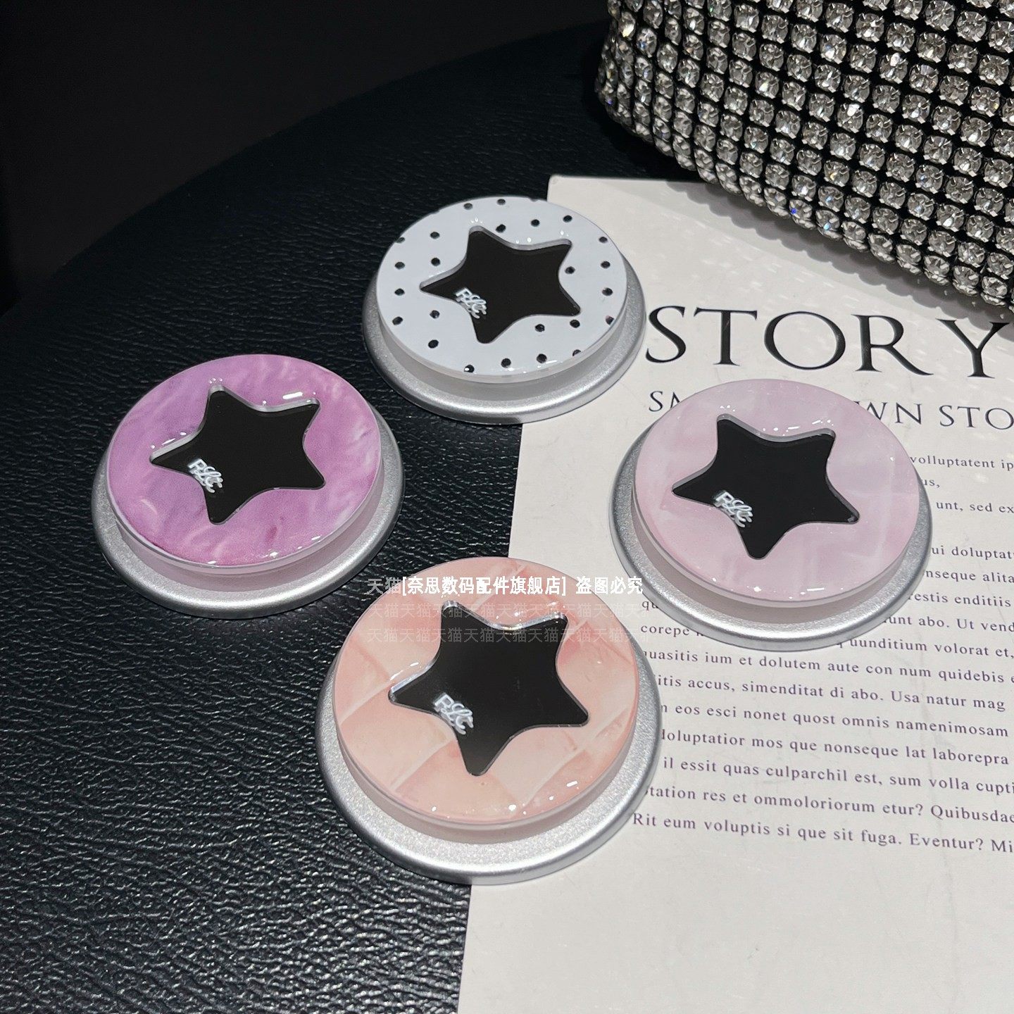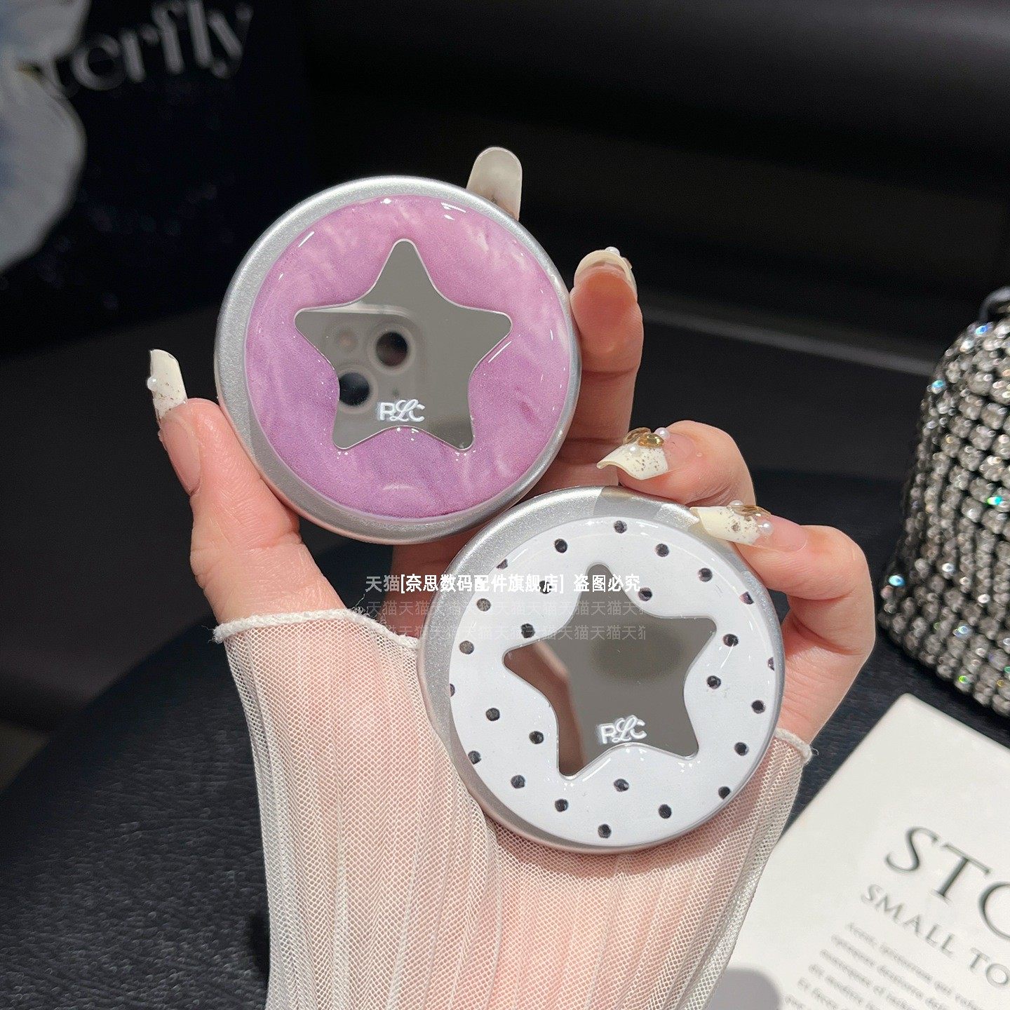 韩系清新波点滴胶五角星镜子磁吸