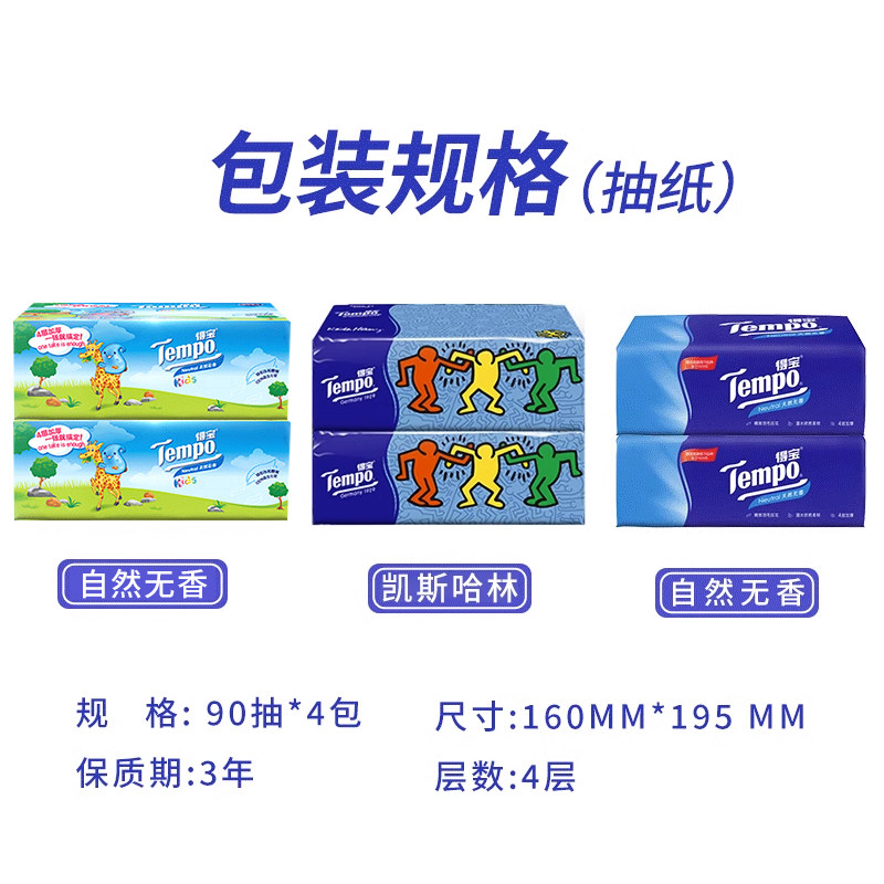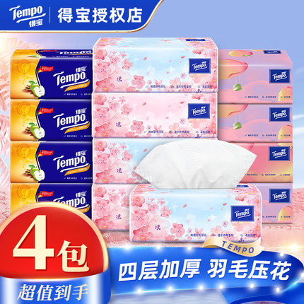 Tempo得宝抽纸4层90抽*4包餐巾纸德宝抽纸面巾纸卫生纸家用组合装