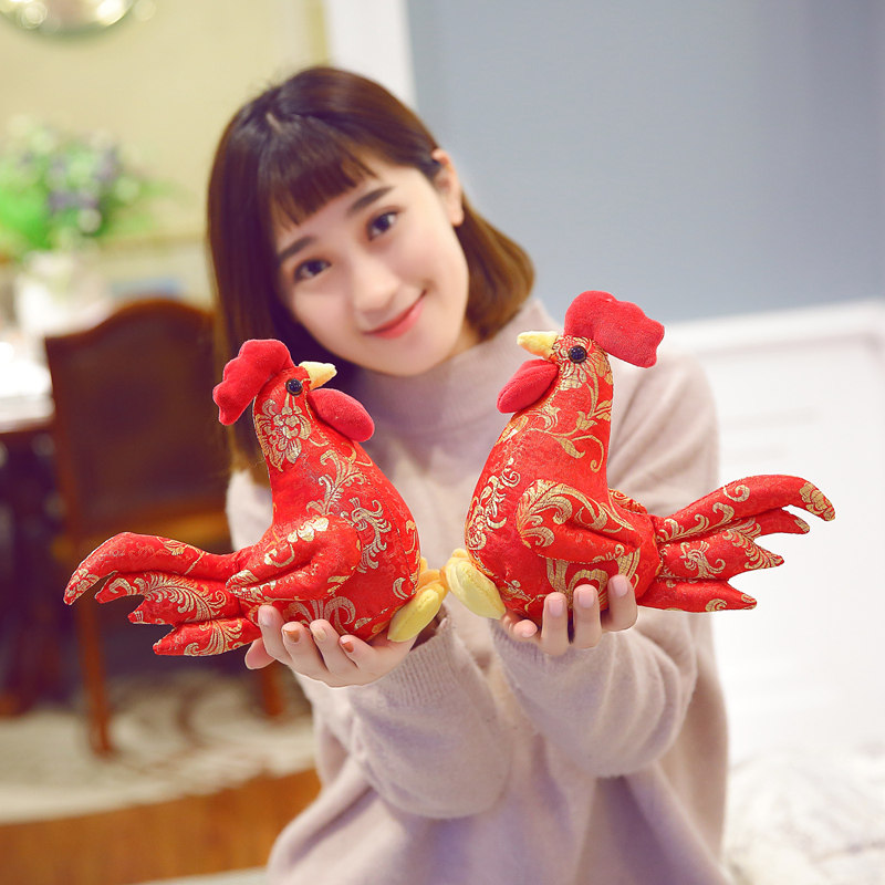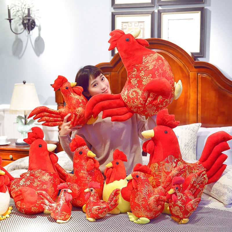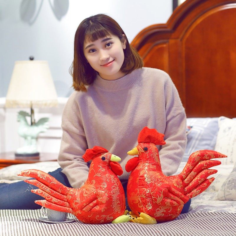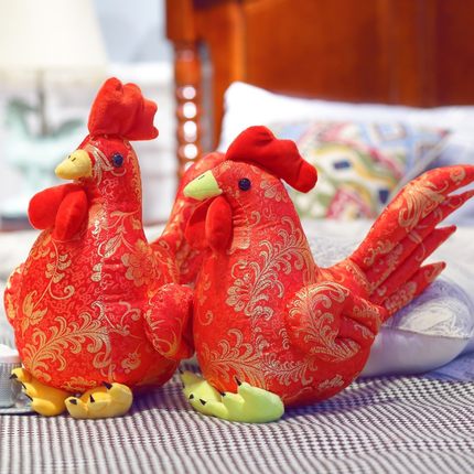 婚庆红色鸡毛绒玩具压床公仔小鸡玩偶公鸡母鸡布娃娃结婚抱鸡一对