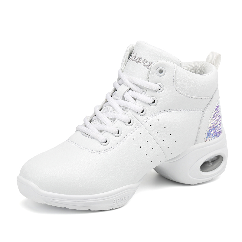 白色皮面跳舞鞋透气广场鞋软底爵士鞋中跟成人妈妈舞蹈鞋水兵舞鞋