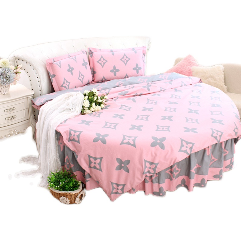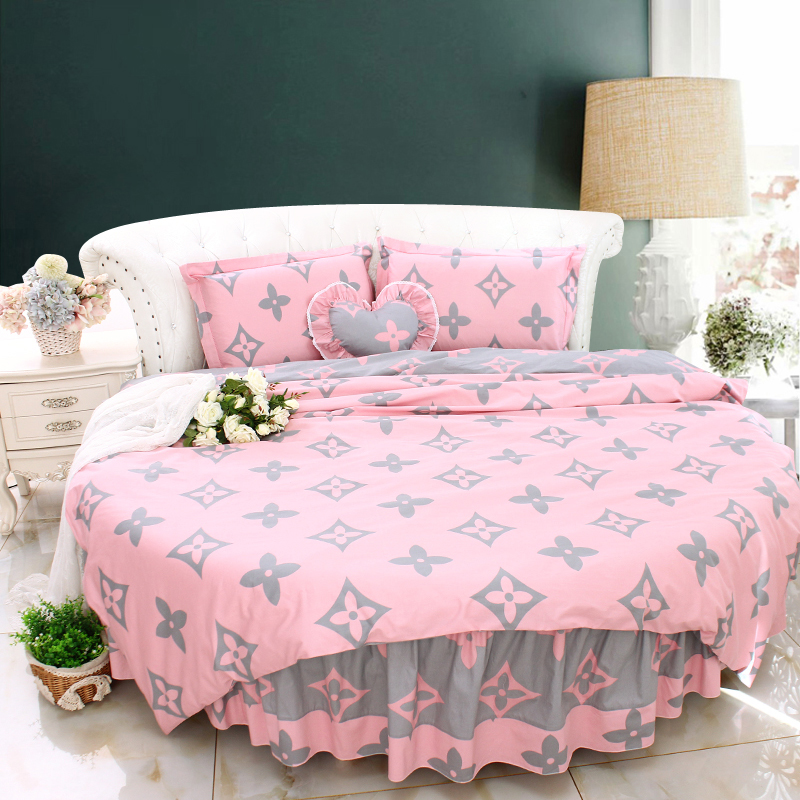 纯棉全棉圆床四件套灰粉色公主风简约圆被套圆床单V韩版圆床裙2米