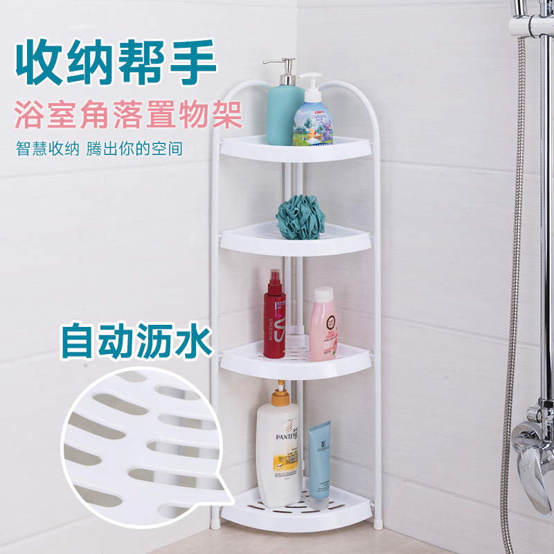 浴室落地置物架卫生间免打孔收纳架厕所厨房伸缩转角三角塑料架子