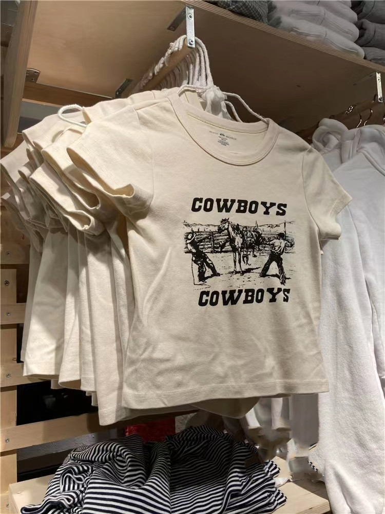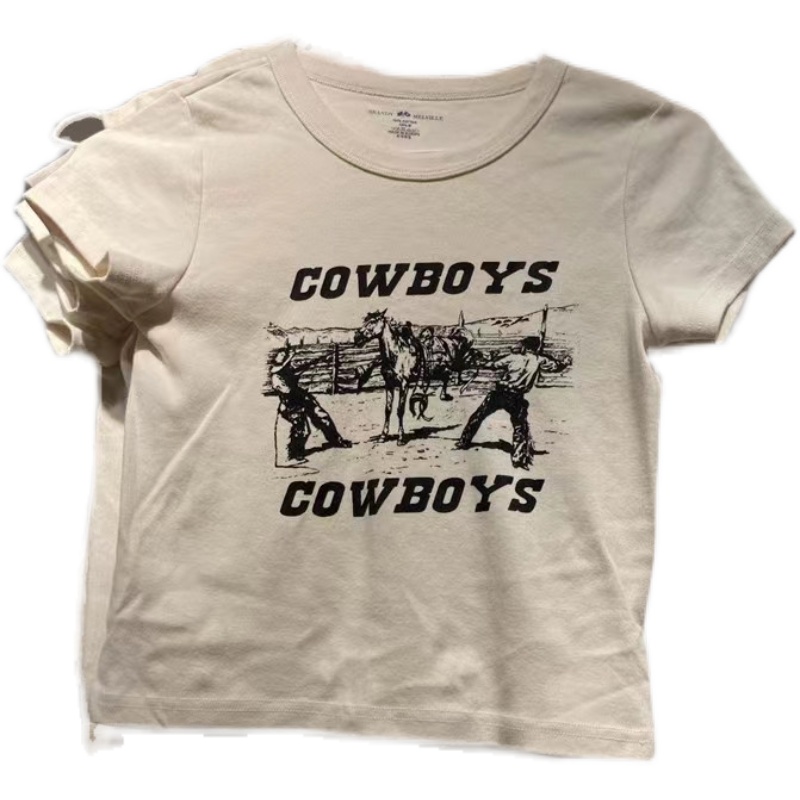 BM牛仔骑士印花T恤官网夏季新款休闲百搭显瘦短袖纯棉女士上衣