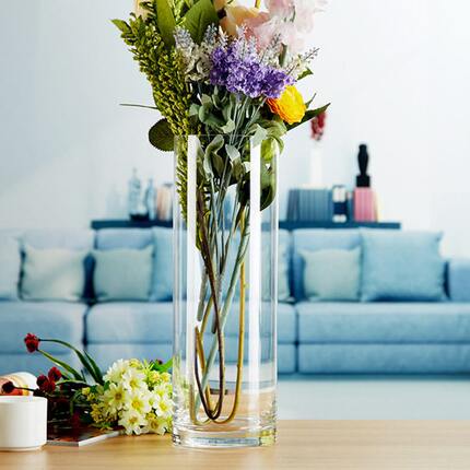 直筒加厚富贵竹玻璃花瓶百合透明大号现代简约圆柱形水培落地瓶子