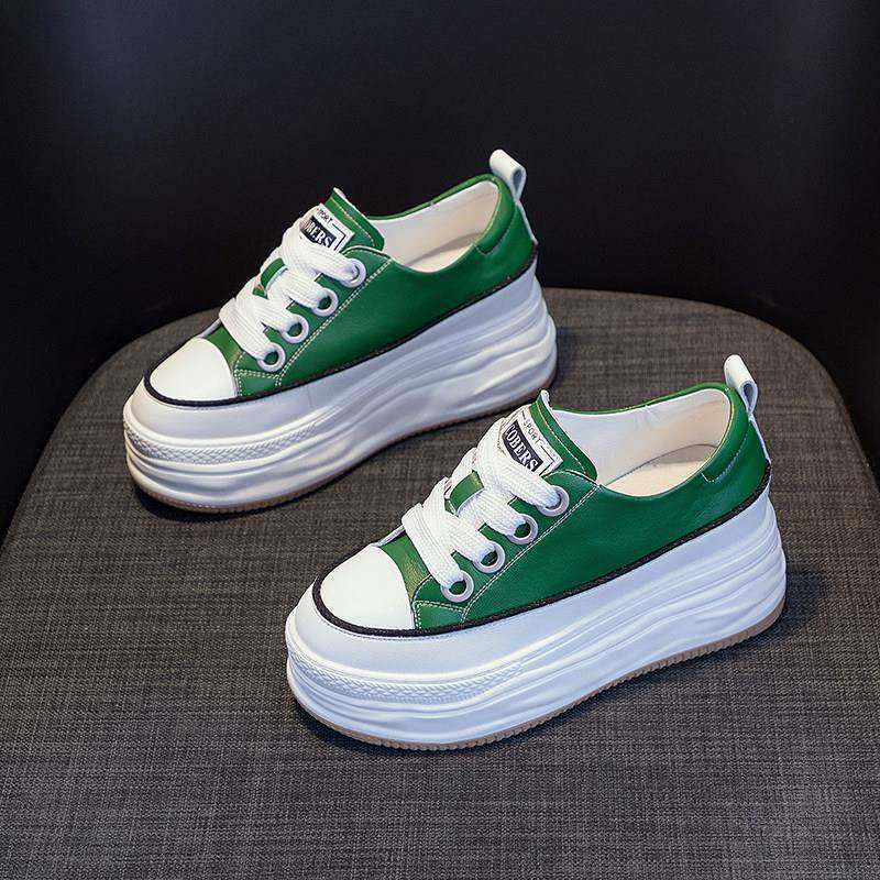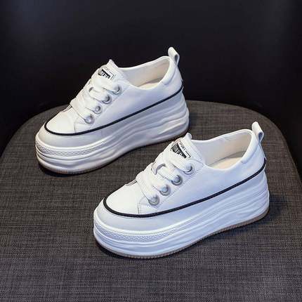 香港2025新款小个子女鞋内增高真皮松糕厚底单鞋春秋运动小白鞋子