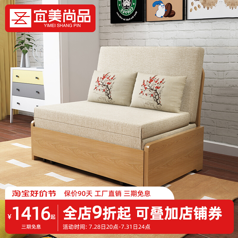 小户型沙发床两用实木 抽拉阳台单人伸缩可折叠多功能1.2米床储物