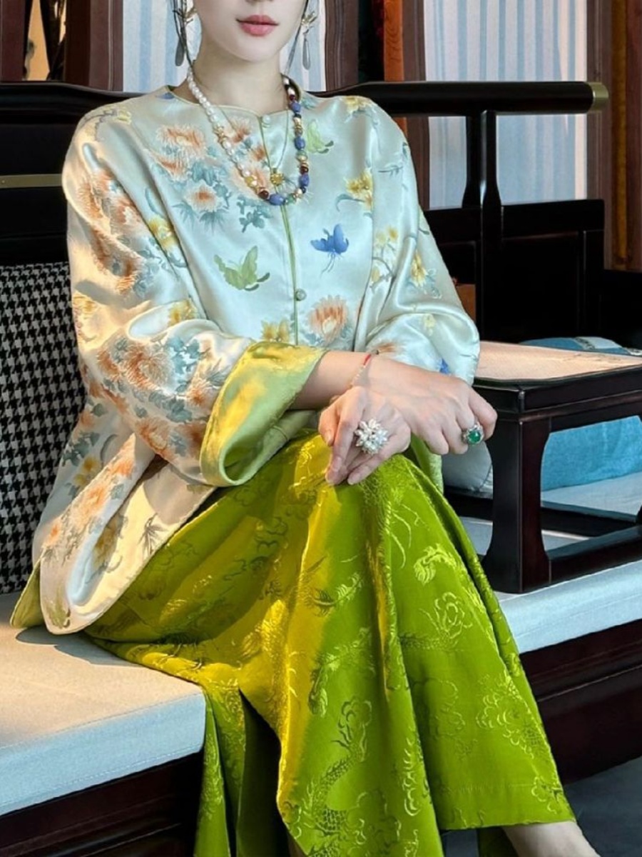 新中式女装清冷感禅意国风绿色上衣半身裙两件套装女早春2025新款