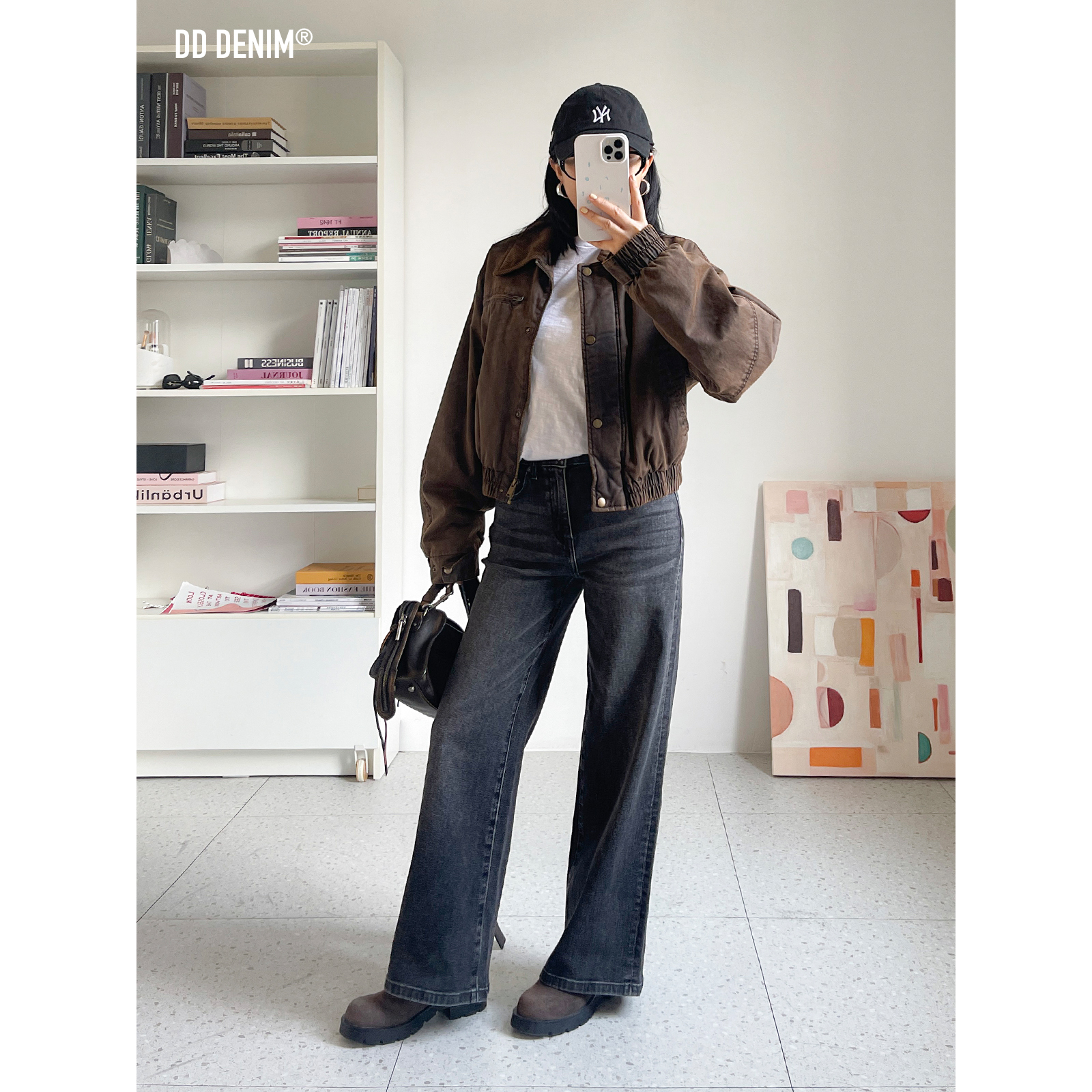 DD「天生直腿」经典版 25秋冬新色 黑灰色弹力中腰直筒阔腿牛仔裤