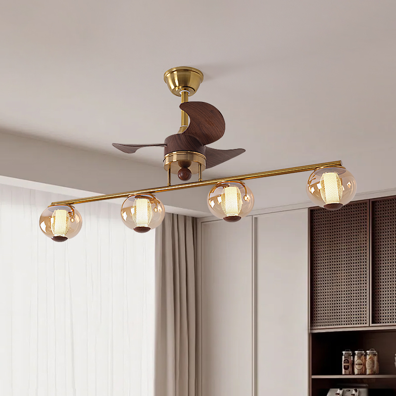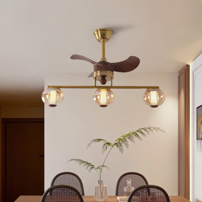 美式复古餐厅风扇灯法式胡桃木色家用餐桌电扇吊灯2025新款吊扇灯