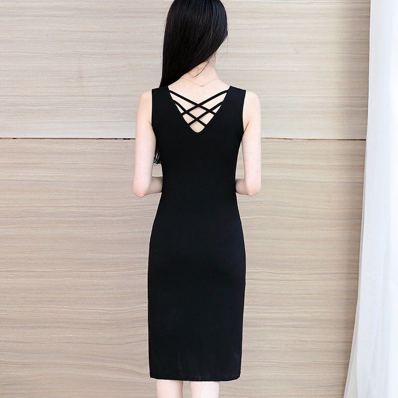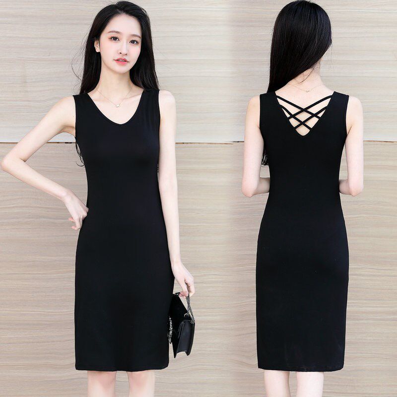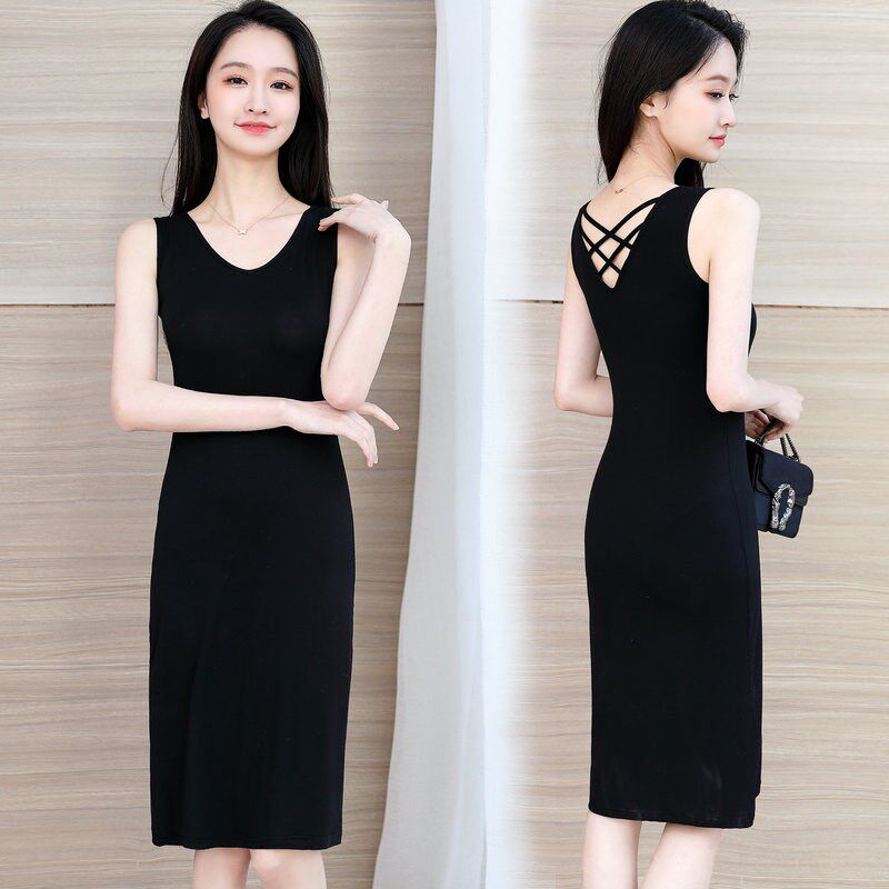 2024年新款美背中长款吊带连衣裙女内搭打底黑色背心长裙春秋裙子