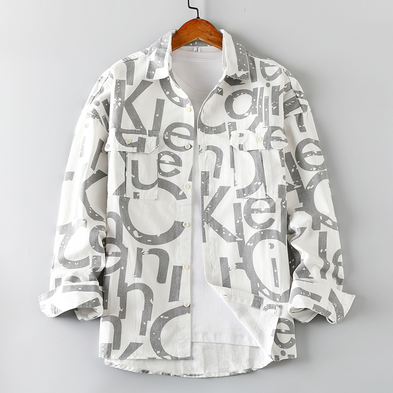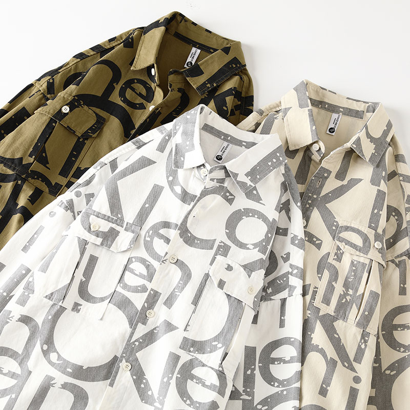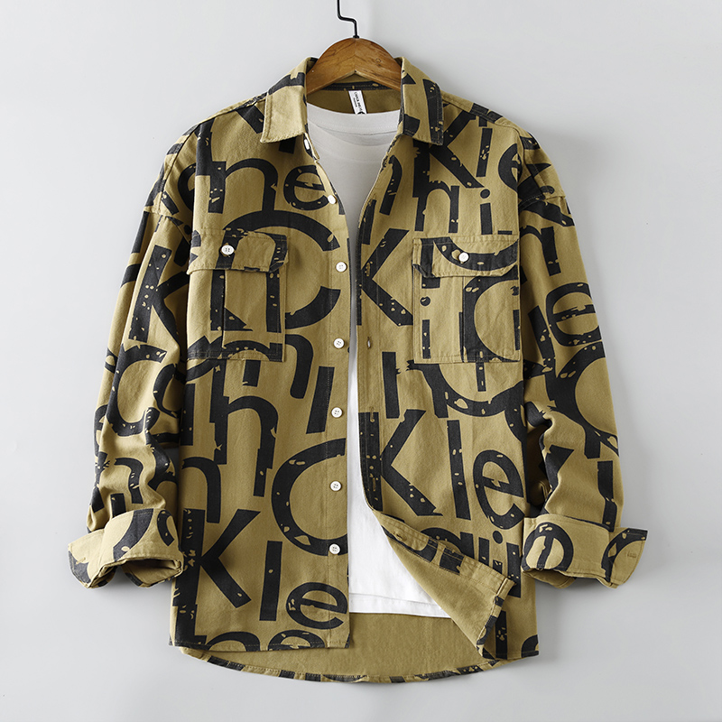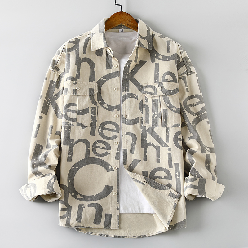 春秋新款男士工装加厚水洗衬衫港风宽松夹克外套衬衣男