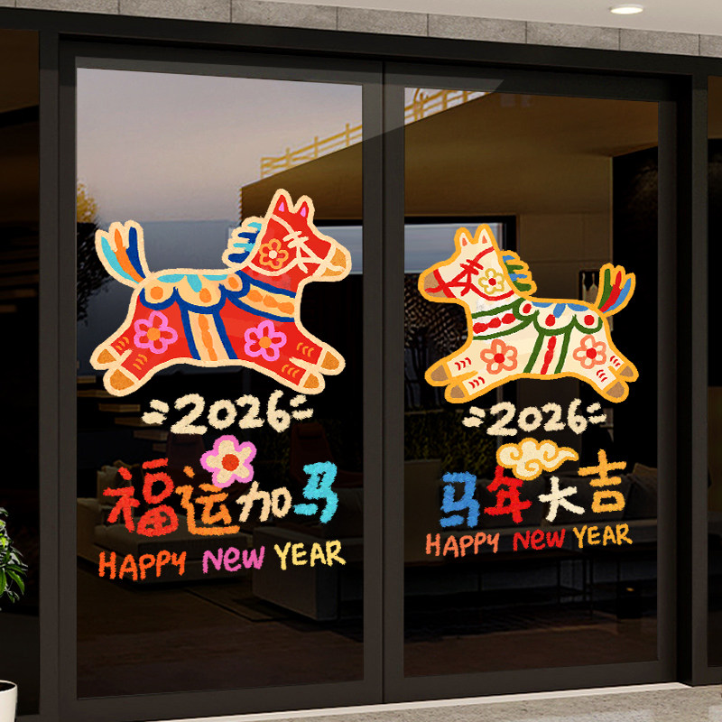 新年装饰窗贴玻璃贴纸马年快乐2026年春节门贴静电贴橱窗氛围贴画