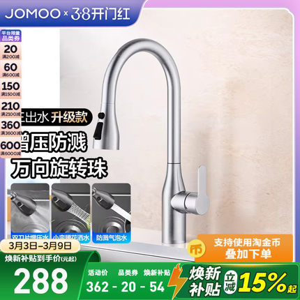 【焕新补贴15%】九牧卫浴水龙头可抽拉式厨房冷热水槽旋转防溅