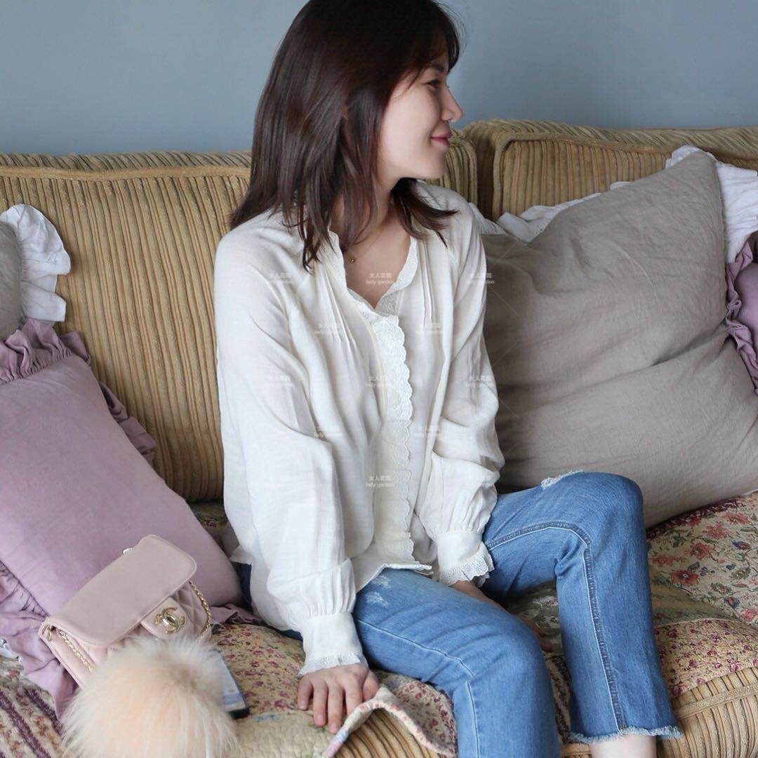 秋季新款~岛屿家~蕾丝花边古典宫廷袖贵族怀旧情调女棉纱长袖衬衫