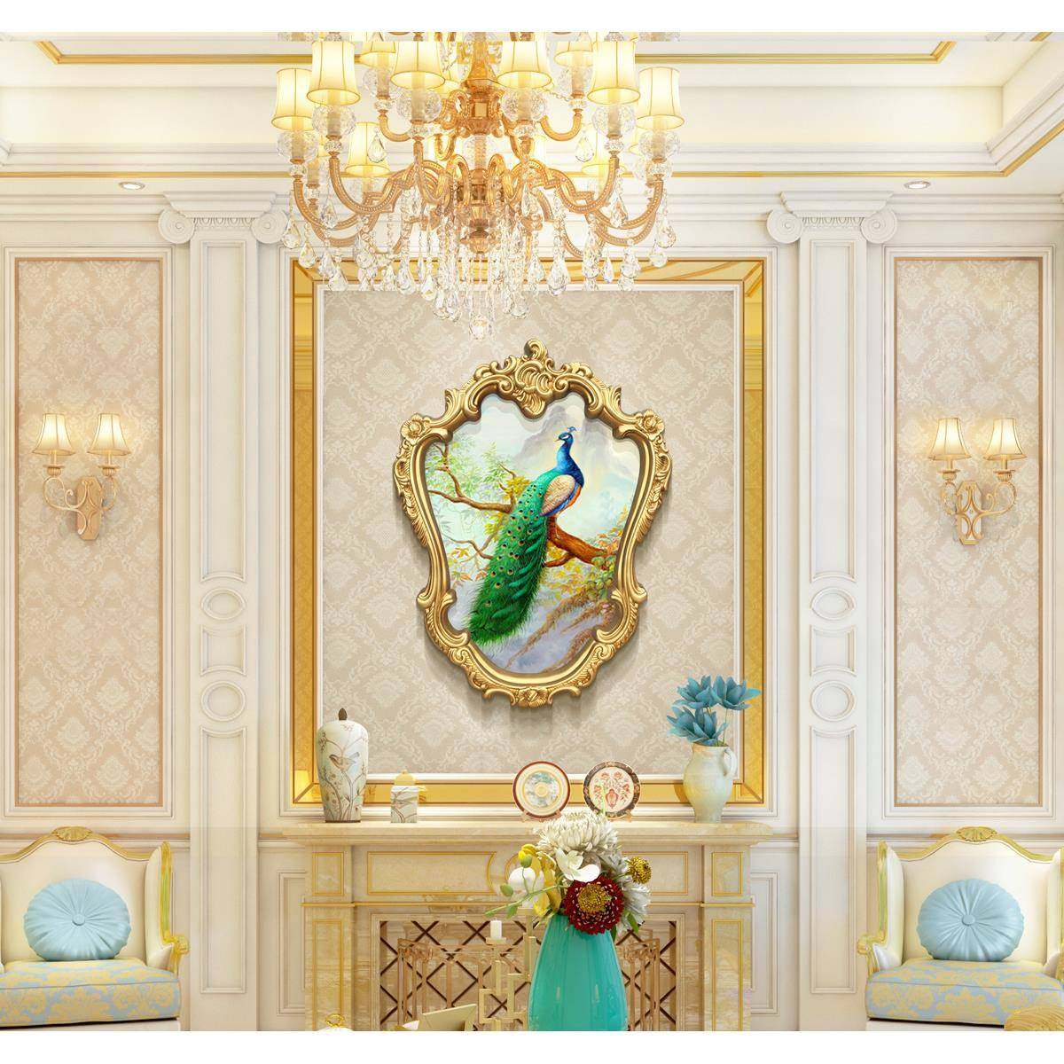 入户玄关装饰画美式孔雀别墅挂画欧式客厅油画简欧走廊轻奢挂画