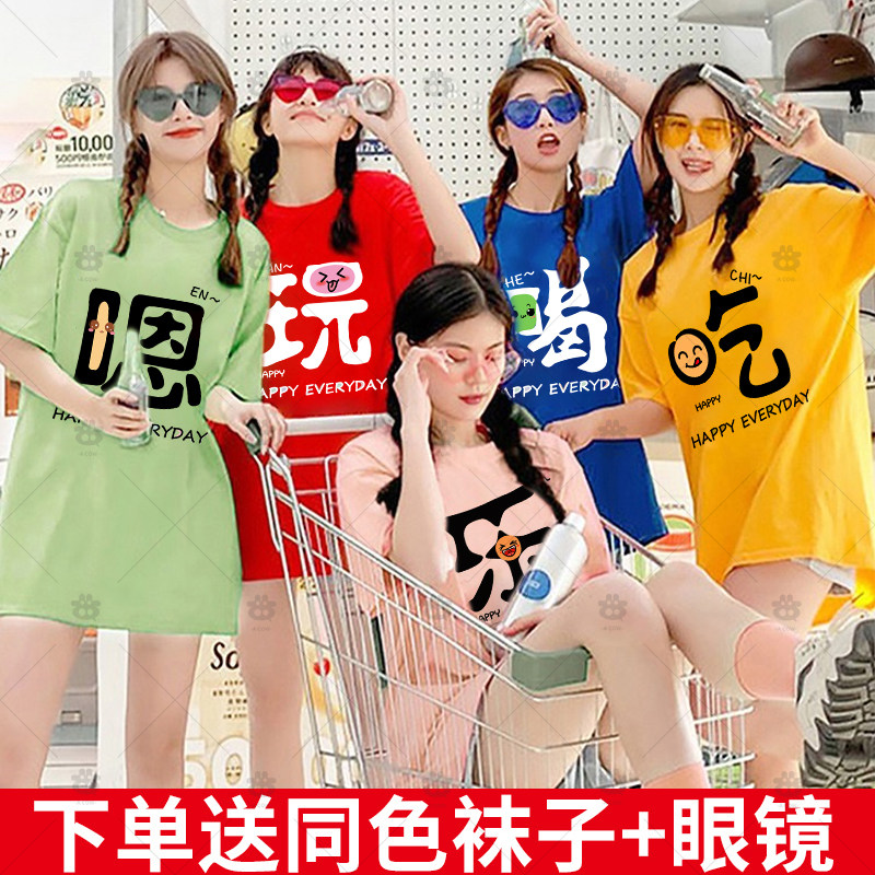彩色t恤闺蜜装姐妹出游多巴胺体恤团建团体学生班服短袖定制logo