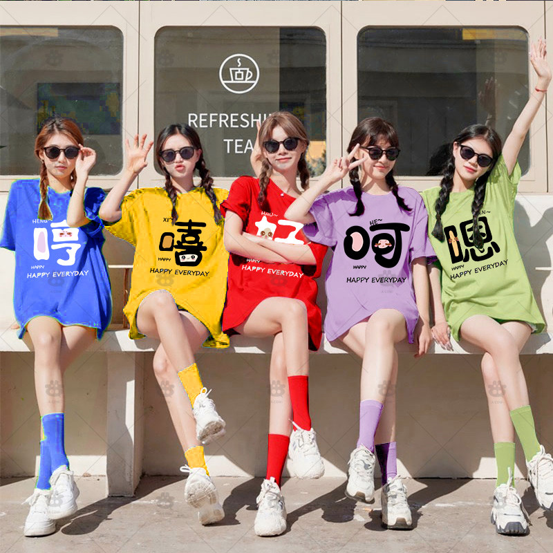 多巴胺糖果色姐妹夏装短袖定制