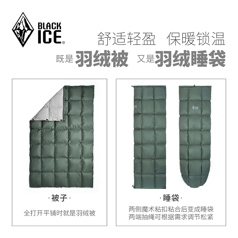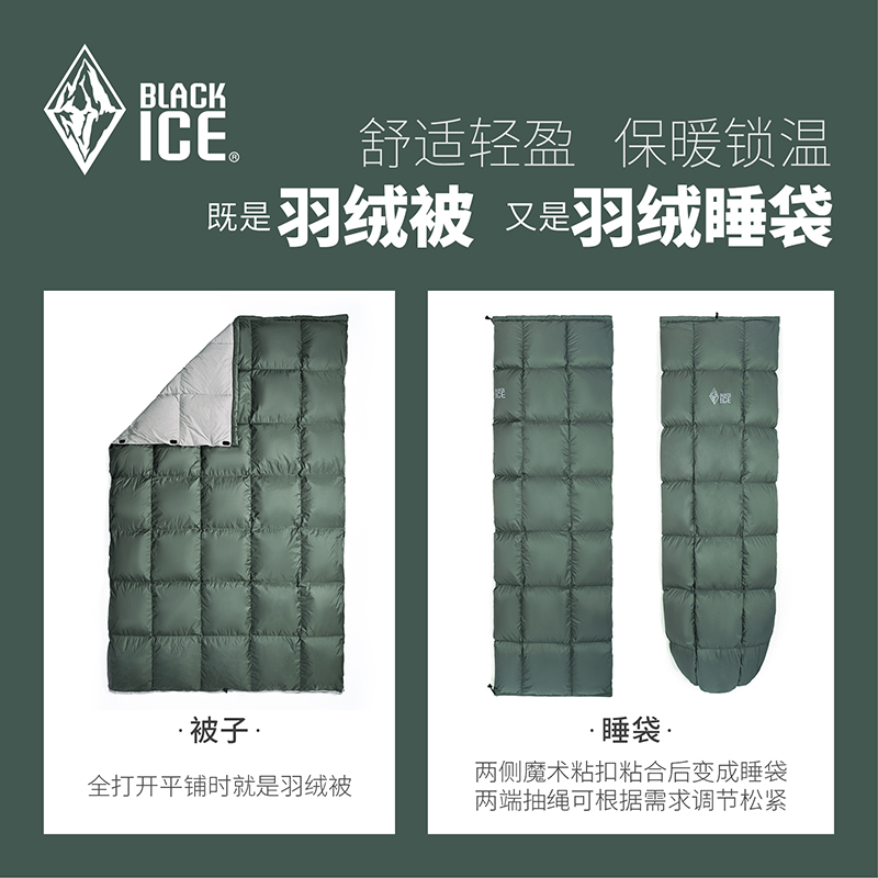 黑冰户外鹅绒可拼接睡袋露营轻量便携羽绒被旅游便携被子Z6612