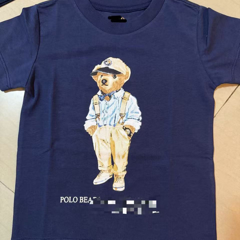 25年新款外贸男女童短袖T恤儿童纯棉男孩夏装卡通小熊牛大大童装
