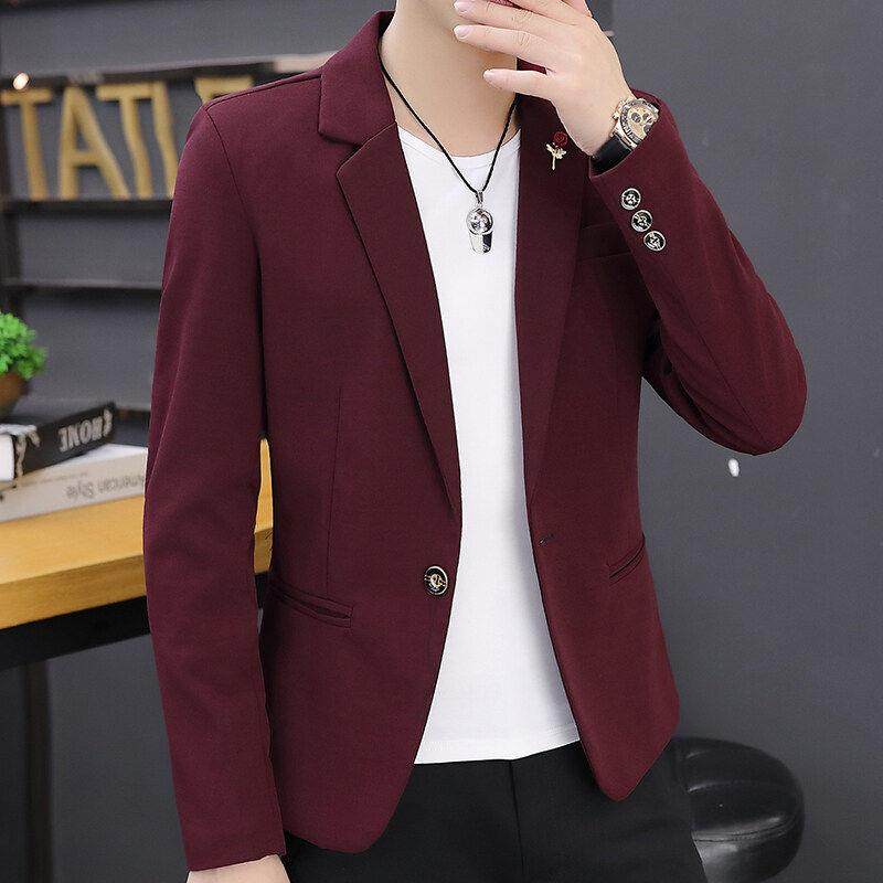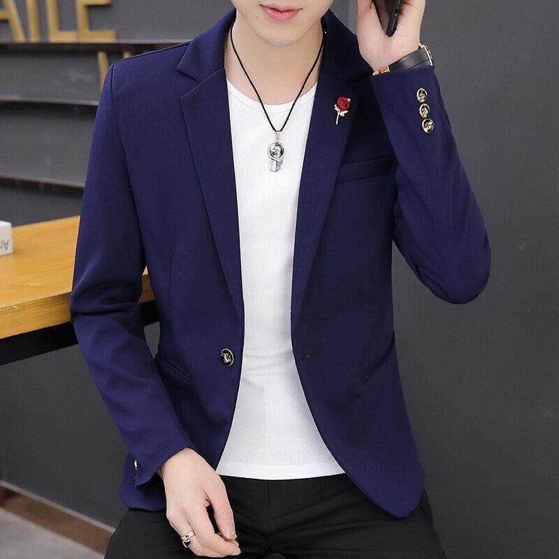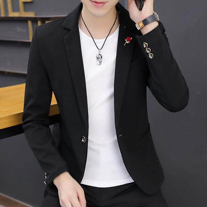 春秋小西装潮男修身外套青年韩版修身英伦单西服学生帅气百0121r