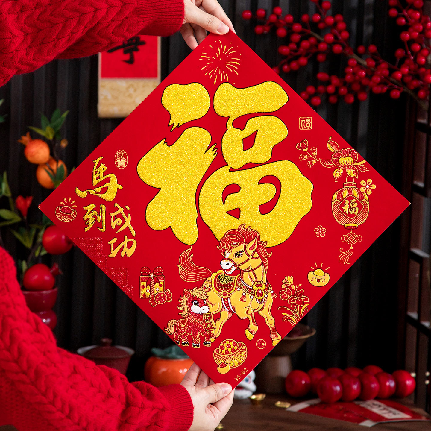 2026马年过年春节新款绒布福字门贴卡通生肖家用入户大门装饰布置