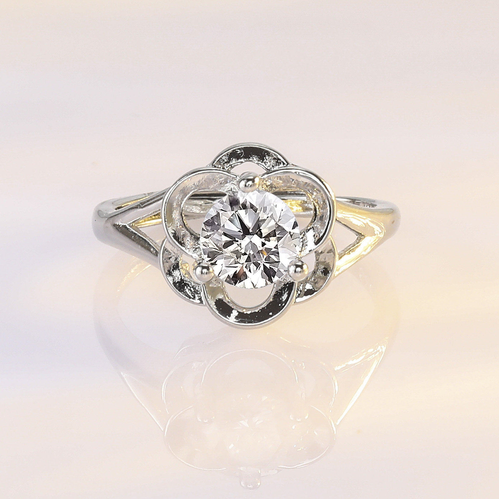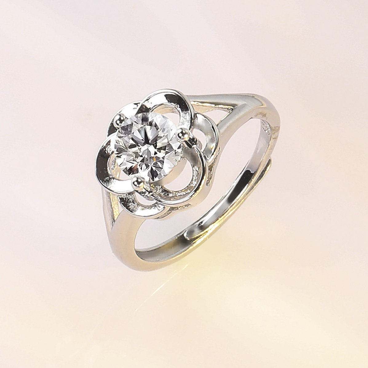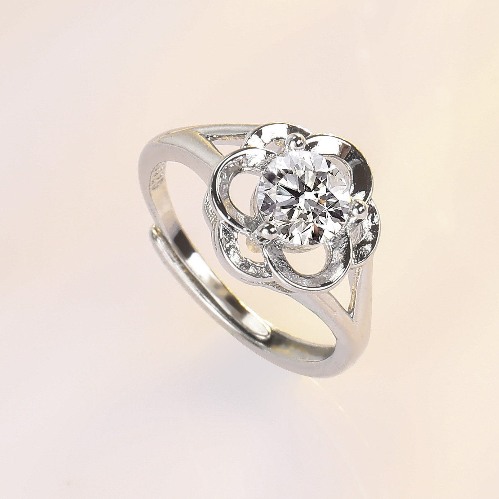 镀925银欧美时尚气质花草锆石戒指少女简约甜美求婚订婚结婚钻戒