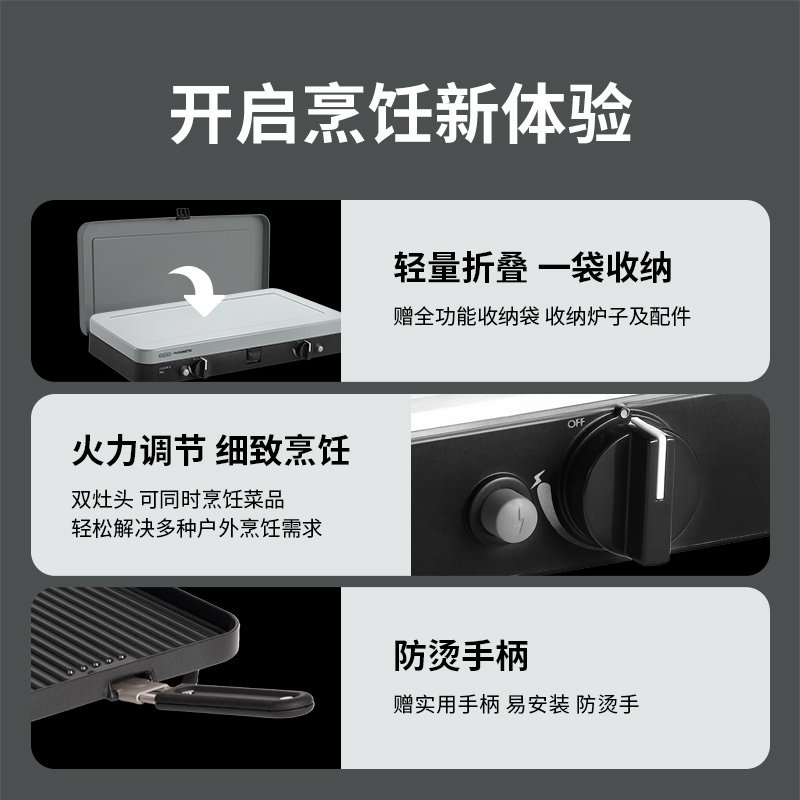 Dometic多美达户外便携式野外烧烤炉煤气烧烤双头炉瓦斯炉燃气灶