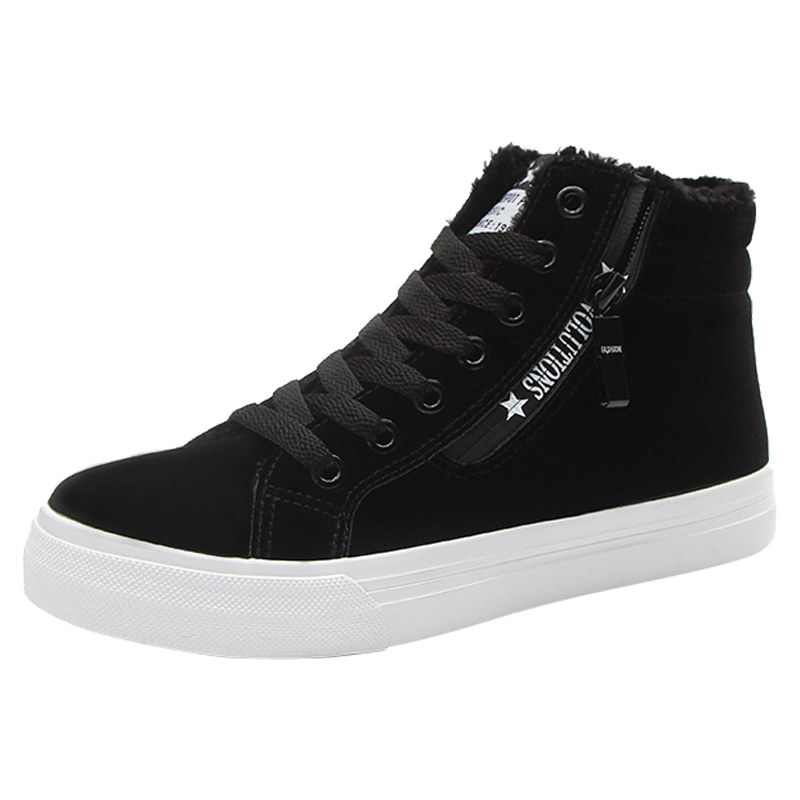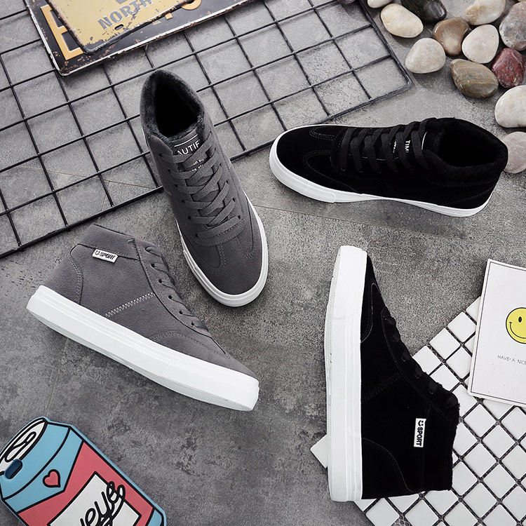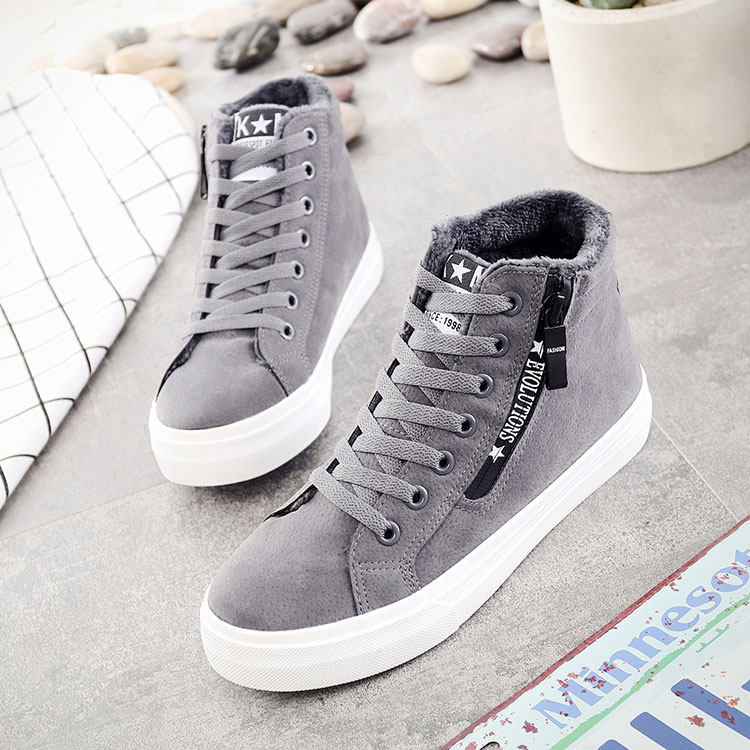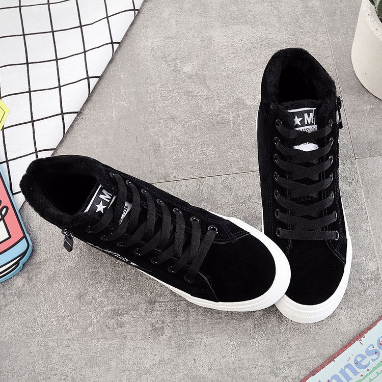 冬季加绒保暖棉鞋女学生鞋短靴百搭板鞋帆布鞋韩版潮平底高帮女鞋