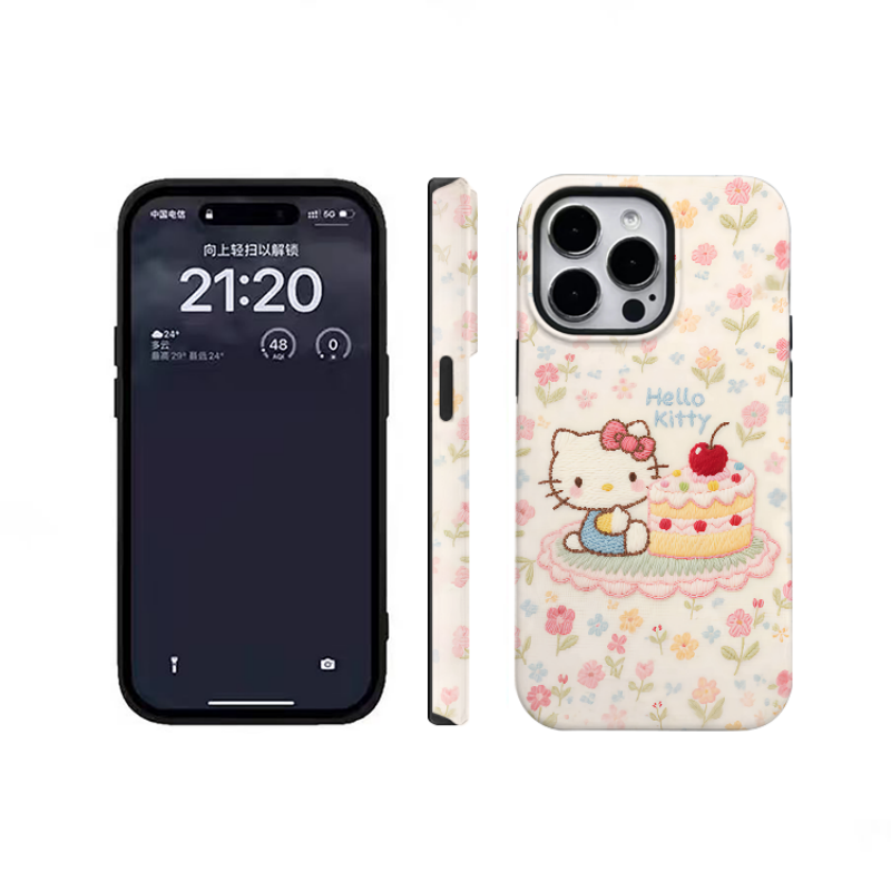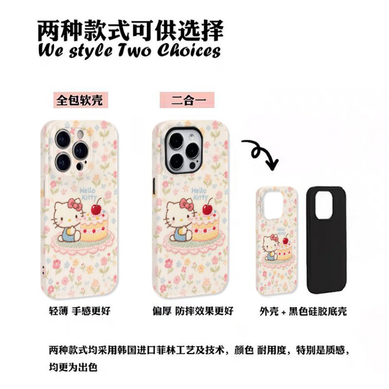 花朵蛋糕kt猫适用苹果17promax手机壳iPhone16二合一菲林12新款11情侣14网红13卡通15plus小众xs全包防摔硬壳