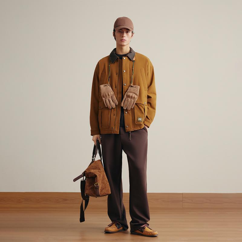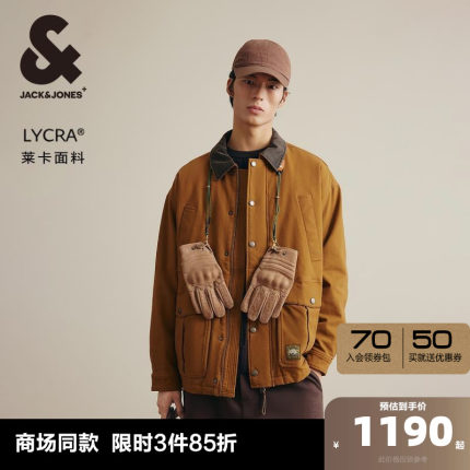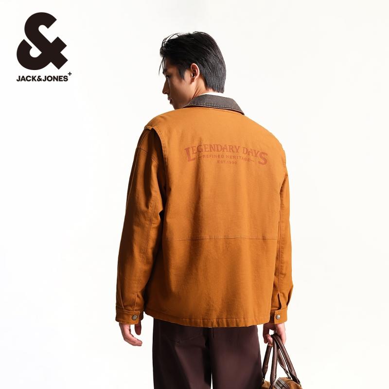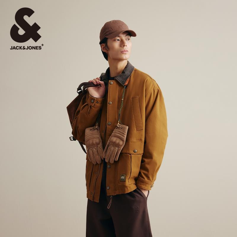 杰克琼斯外套夹克棉服春季新款字母印花休闲做旧翻领夹克男款男装