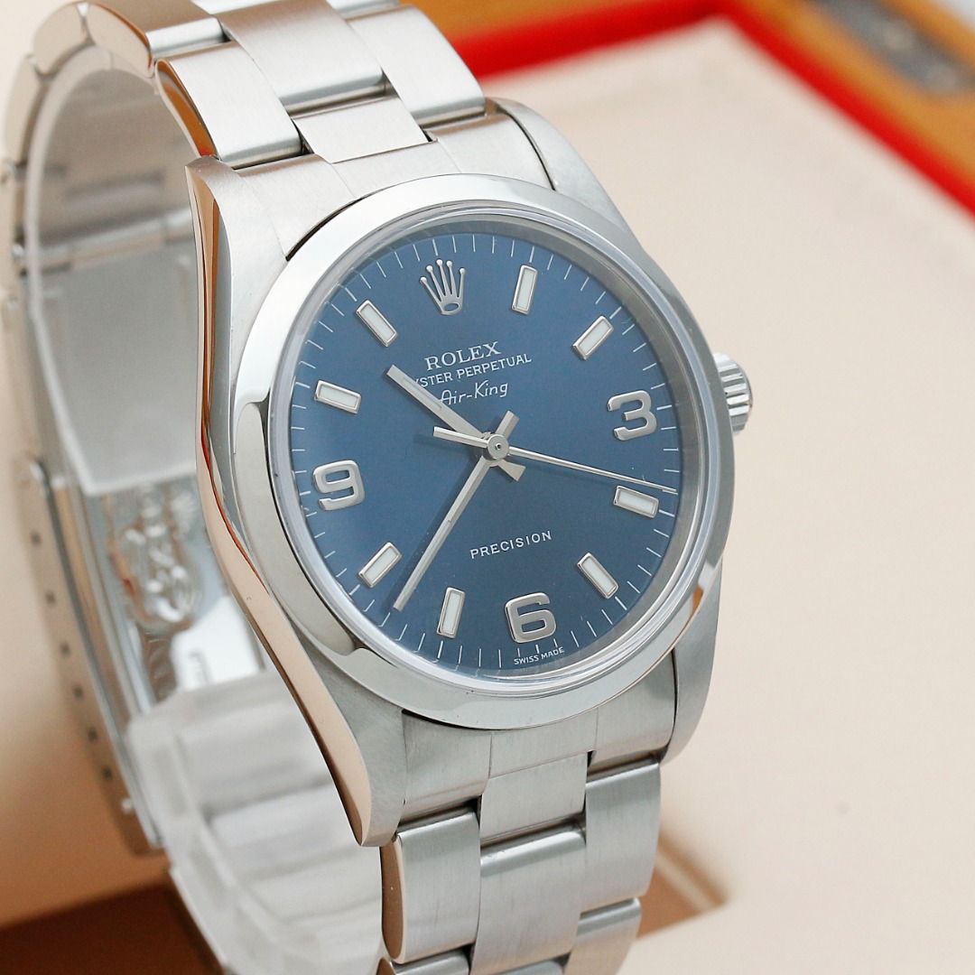 原装正品[9.8新]劳力士空中霸王14000精钢蓝面34mm自动机械男表