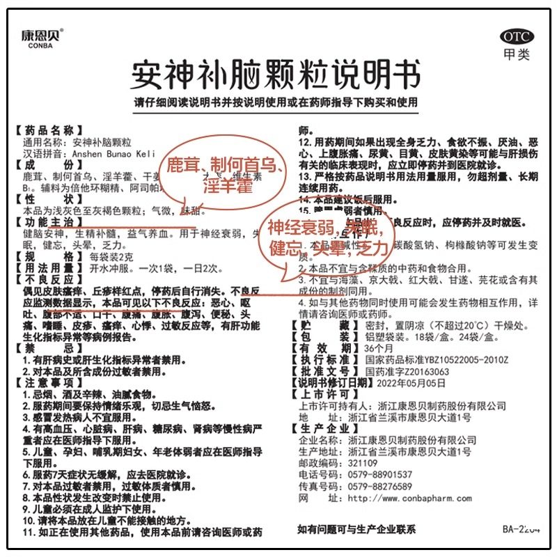 康恩贝安神补脑颗粒口服液旗舰店官方金力神衰康神经衰弱鹿首健脑