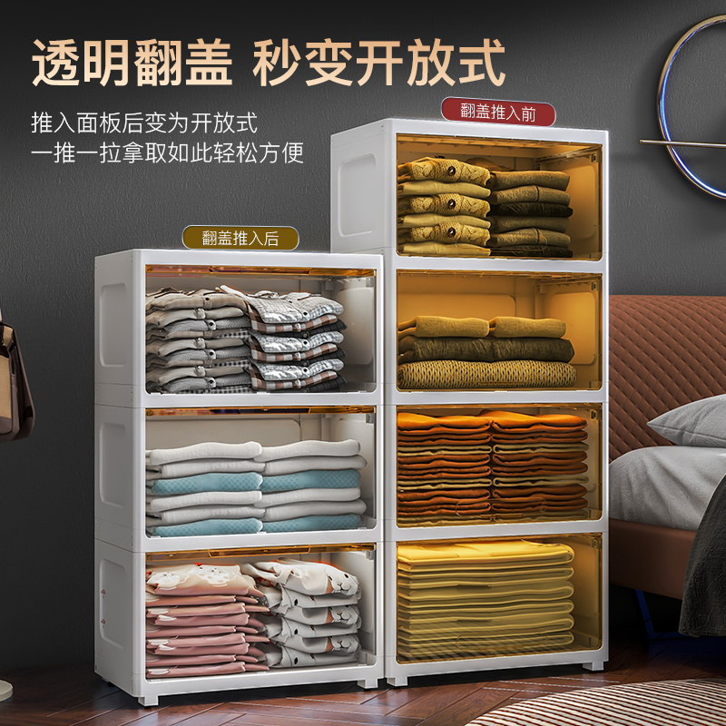 加厚款翻盖收纳柜多层透明储物柜子塑料五斗柜儿童宝宝玩具收纳箱