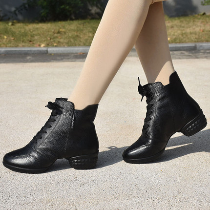 意中飞秋冬真皮舞蹈鞋女式软底跳舞鞋水兵舞鞋现代舞鞋广场舞鞋女