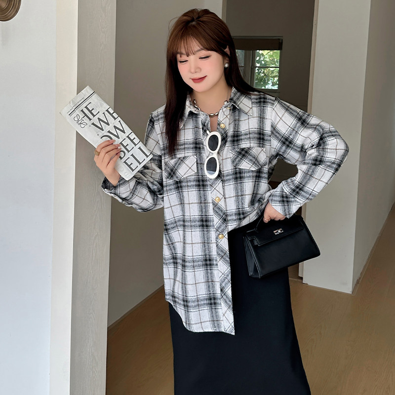 今年流行爆款衬衫女2026早春大码新款复古格子中长款磨毛外套上衣