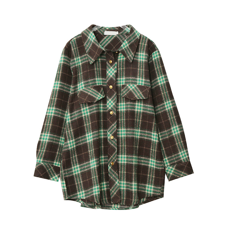 长袖衬衫早春新品格子复古宽松