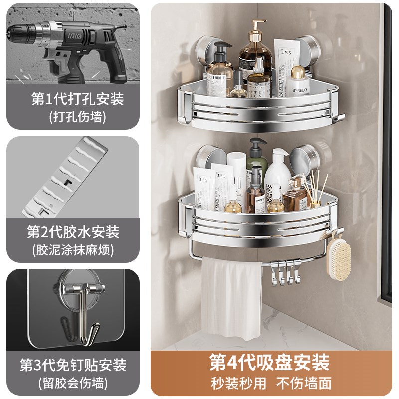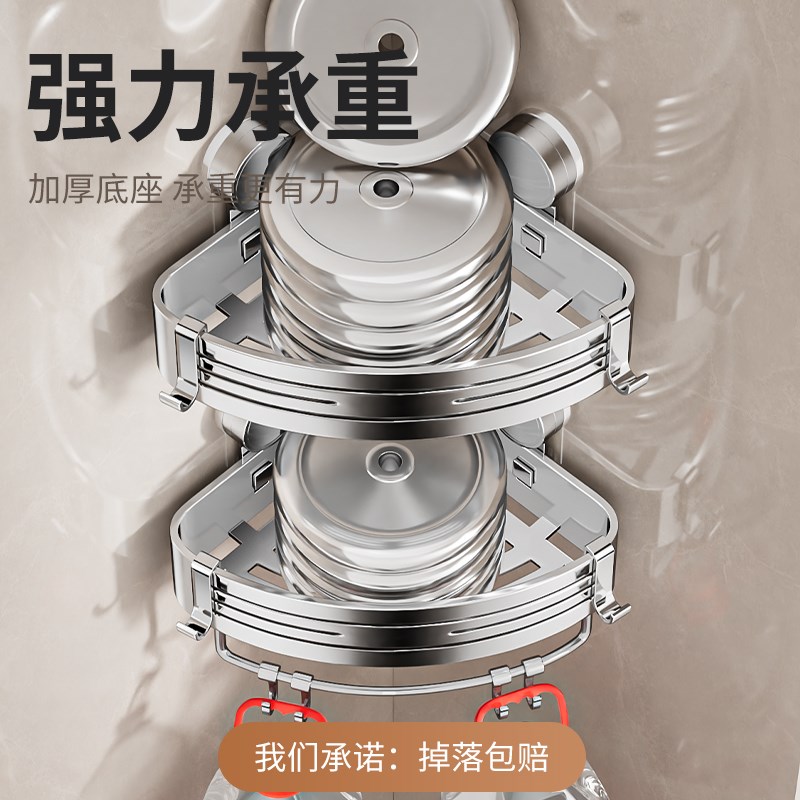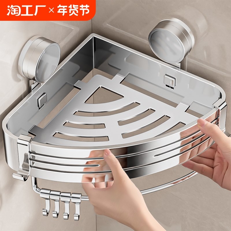 304不锈钢吸盘卫生间置物架免打孔厕所洗漱台浴室三角篮转角收纳